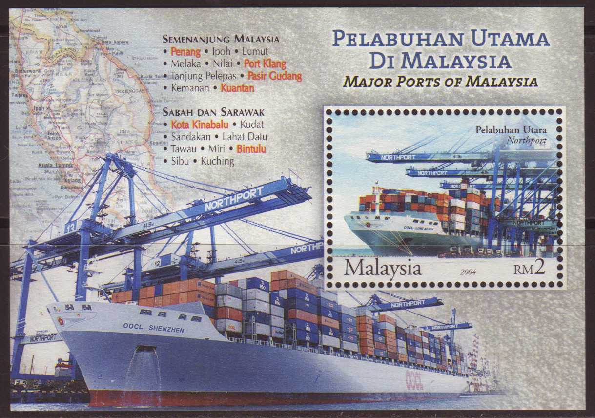 N73498Малайзия. 2004. Контейнеровоз в порту. Сувенирный лист, (**)150Контакт