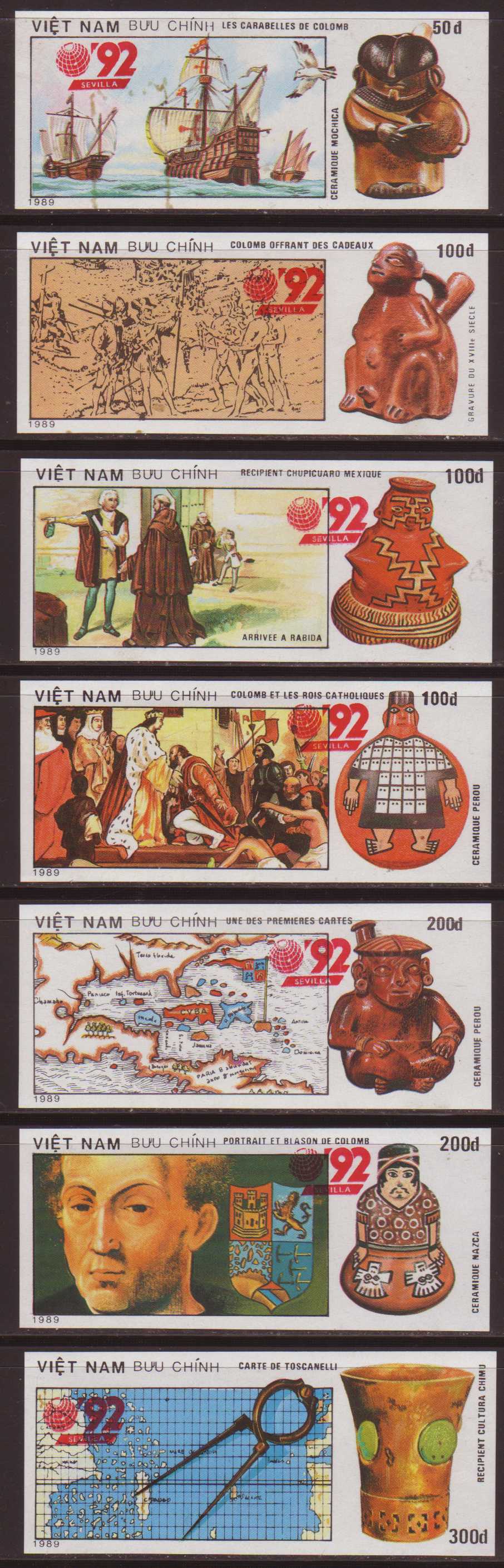 N78623Вьетнам. 1992. 500 лет открытия Америки. Серия 7 марок, надпечатка, без зуб. (**)1690Контакт