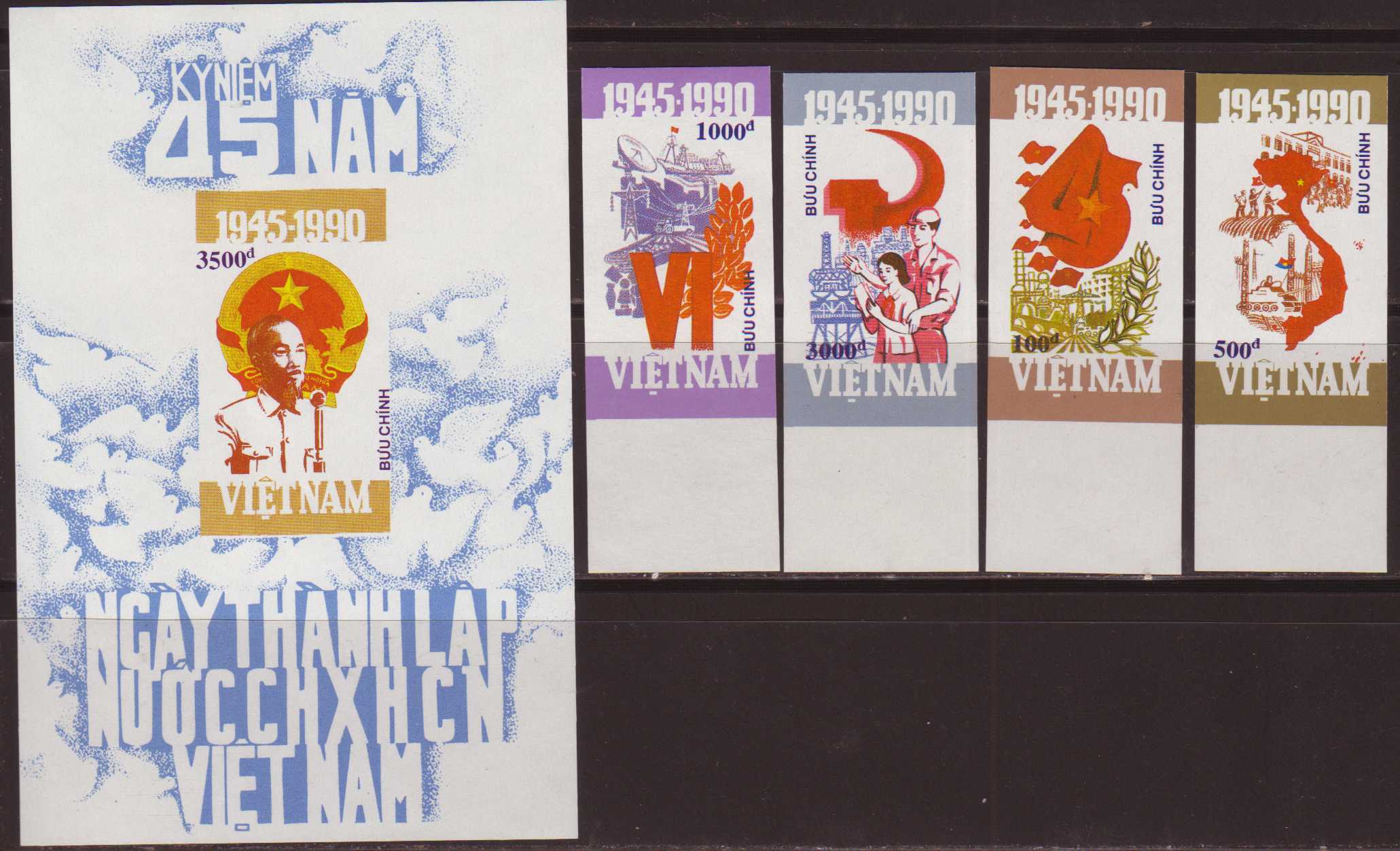 | N81378 | Вьетнам. 1990. 45-летие Социалистической республики Вьетнам.Серия 4 марки и сувенирный лист, без зуб. (**) |  | 780 |  |