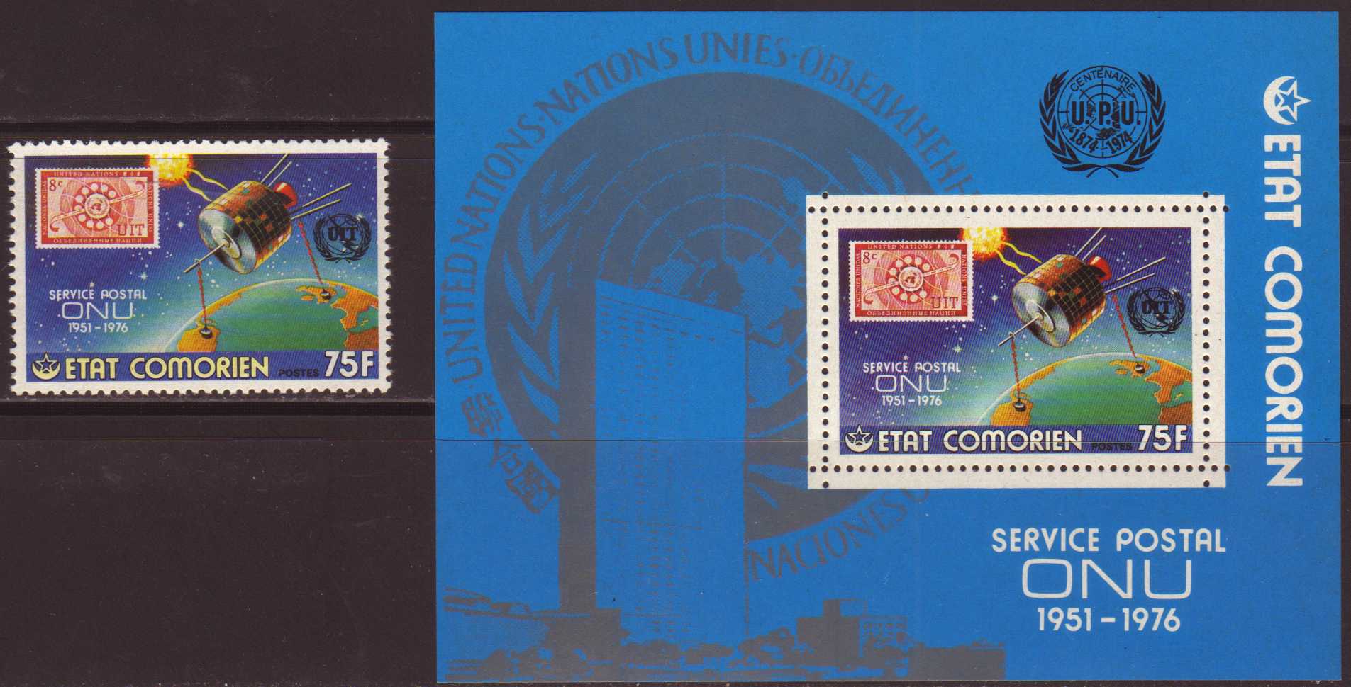 | N83248 | Коморские острова. 1976. Интелсат. 1 марка и сувенирный лист, (**) |  | 385 |  |
