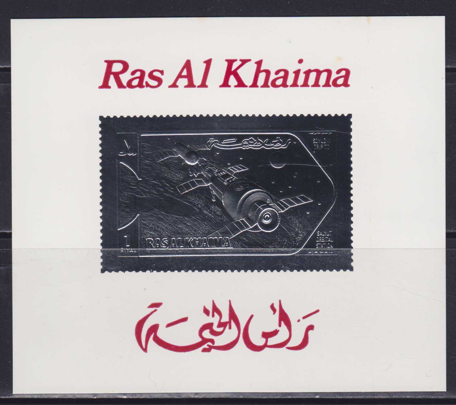 | N137221 | Рас аль Хайма 1971. Союз-2. Сувенирный лист с тиснением на серебряной фольге (**) |  | 1500 |  |