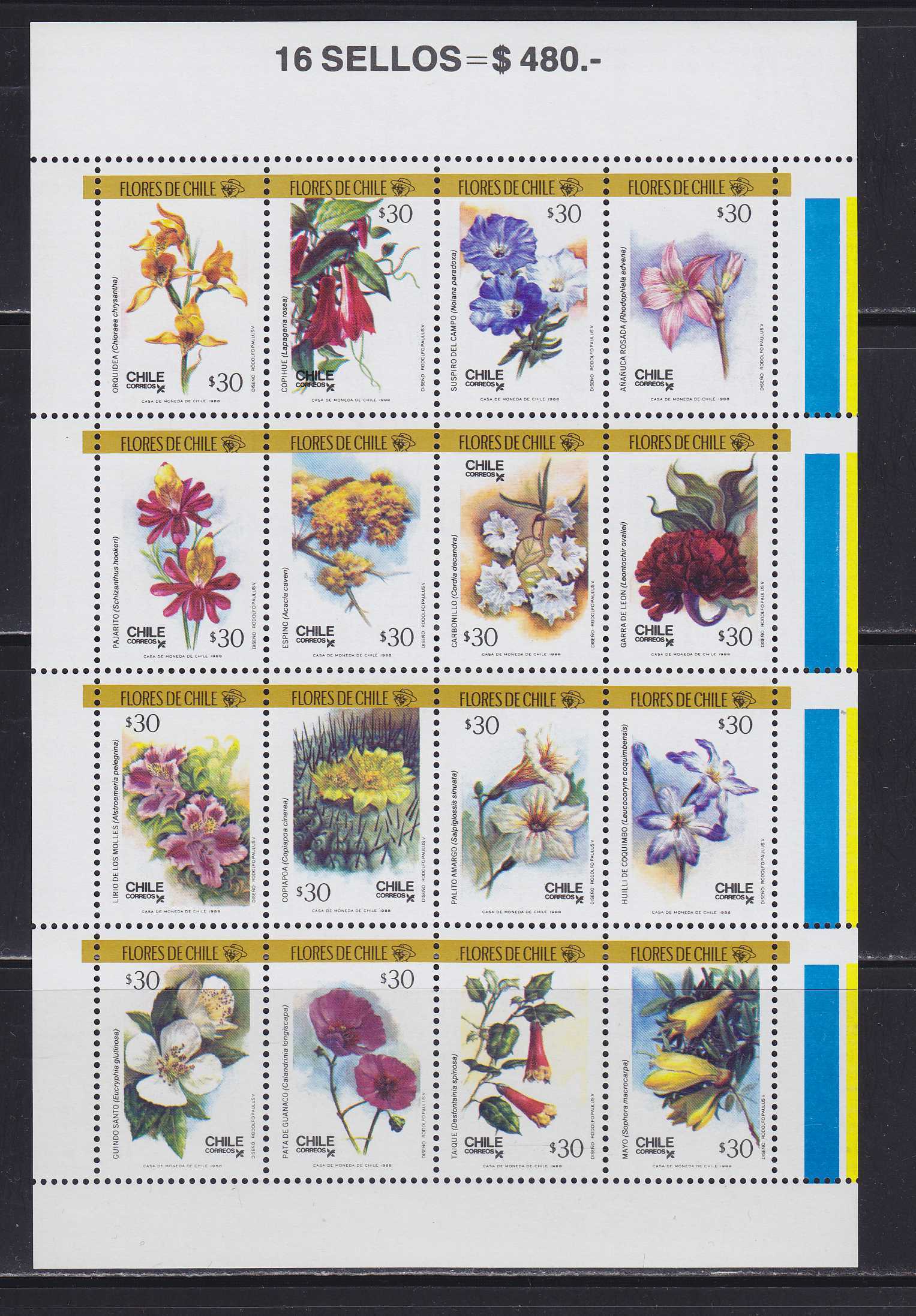 | N152641 | Чили 1988. Цветы. Сувенирный лист 16 марок (**) |  | 1080 |  |