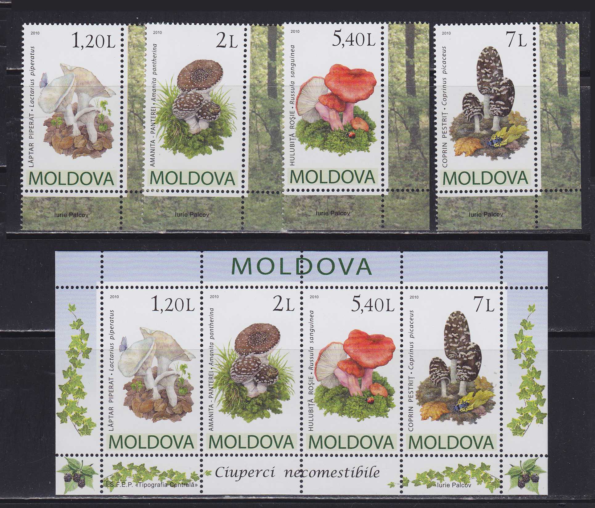 N152602Молдавия 2010. Грибы. Серия 4 марки и сувенирный лист (**)1010Контакт