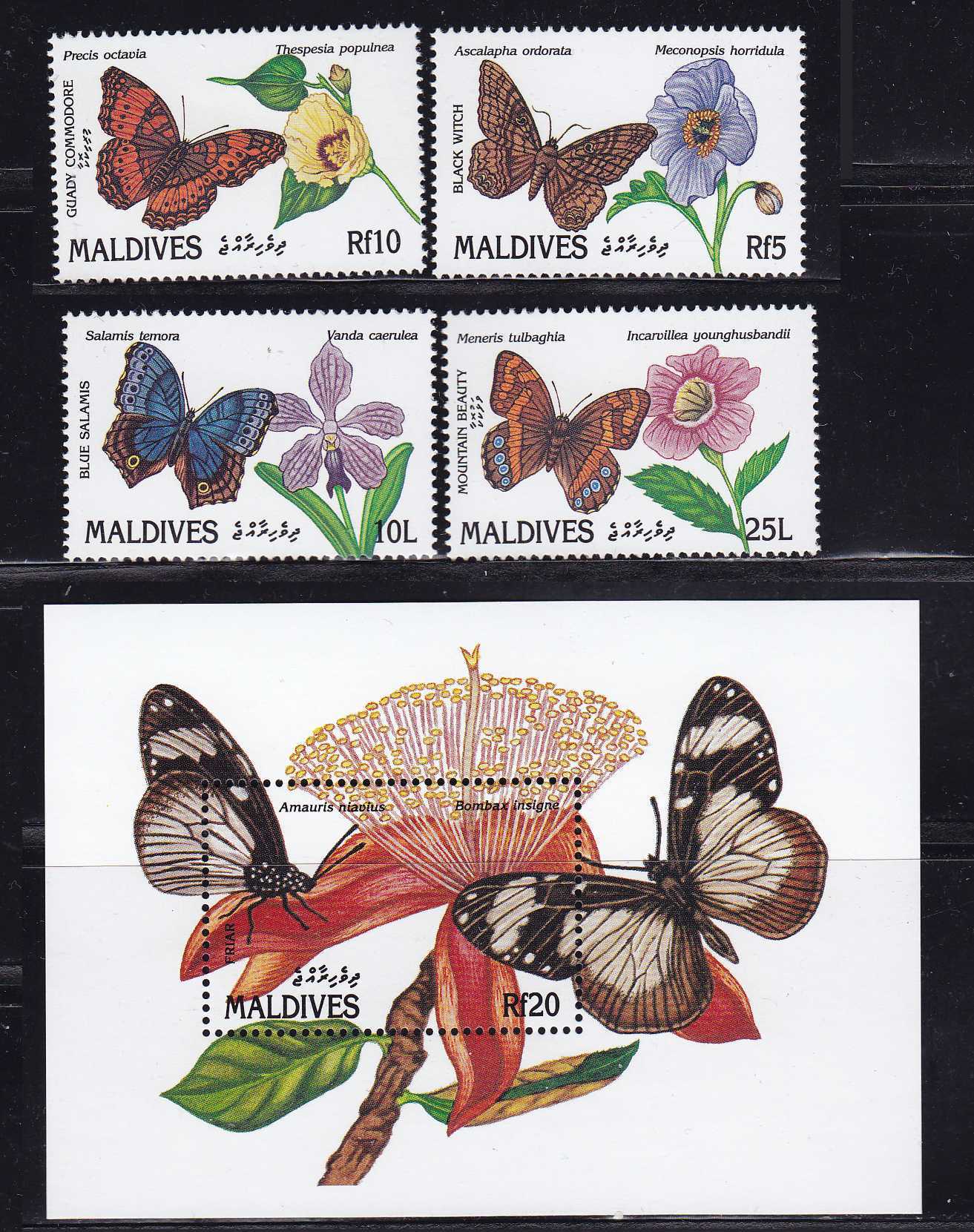 | N152314 | Мальдивские острова 1991. Бабочки. 4 марки и сувенирный лист (**) |  | 1080 |  |