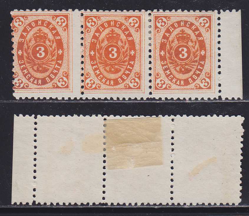 ![]() | Z4363 | 14 | Задонск 1889. 2-ое издание. Полоска из 3-х марок, с правым полем (*) | 9000 | ![]() | |